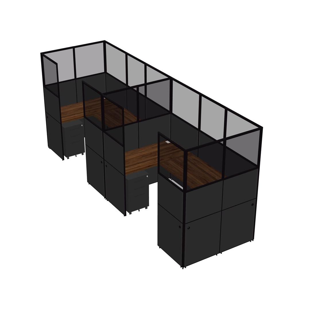 Columbia Walnut U-shaped Panel System For 2 Person + Metal Mobile Drawers For 2 User(s)