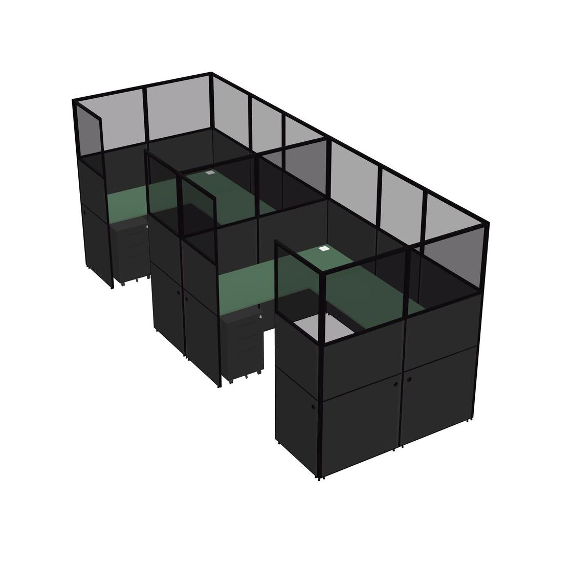 Green U-shaped Panel System For 2 Person + Metal Mobile Drawers For 2 User(s)