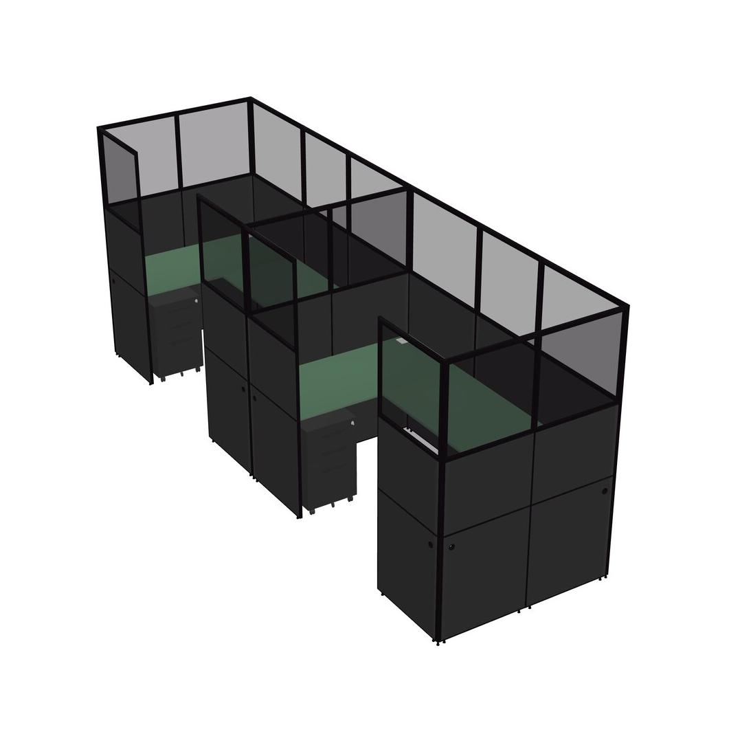 Green U-shaped Panel System For 2 Person + Metal Mobile Drawers For 2 User(s)