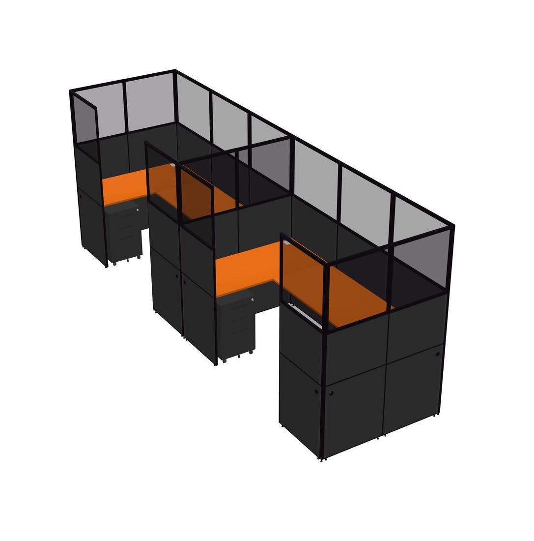 Orange U-shaped Panel System For 2 Person + Metal Mobile Drawers For 2 User(s)