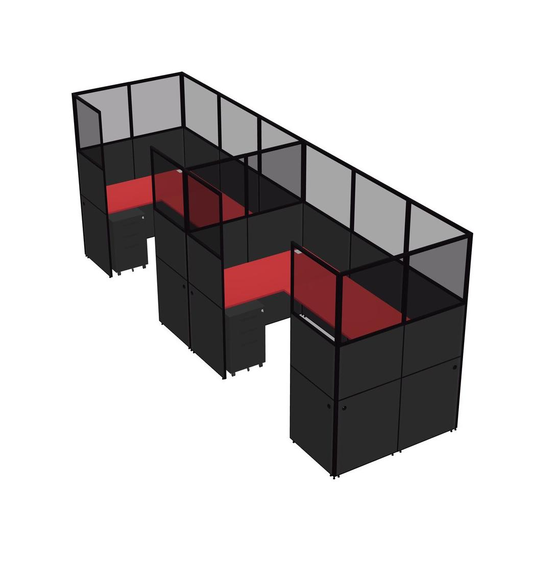 Prism Red U-shaped Panel System For 2 Person + Metal Mobile Drawers For 2 User(s)