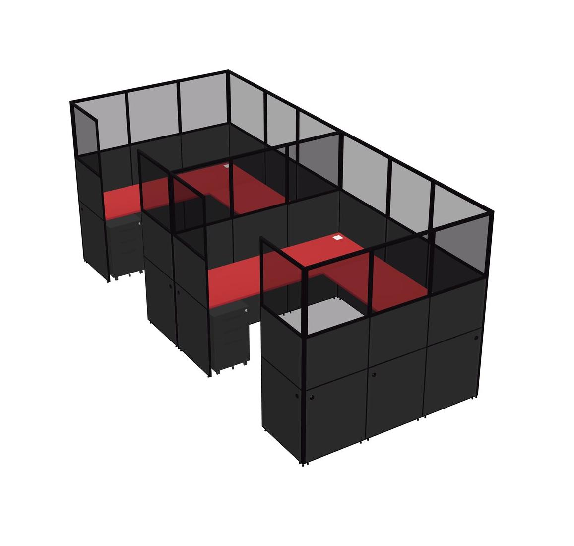 Prism Red U-shaped Panel System For 2 Person + Metal Mobile Drawers For 2 User(s)