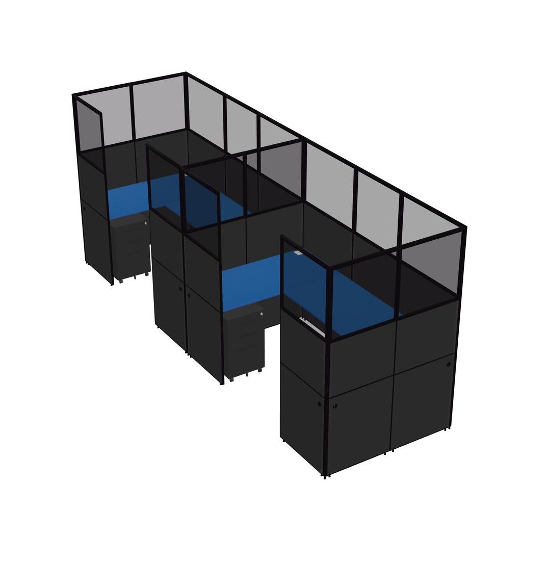 Prism Blue U-shaped Panel System For 2 Person + Metal Mobile Drawers For 2 User(s)