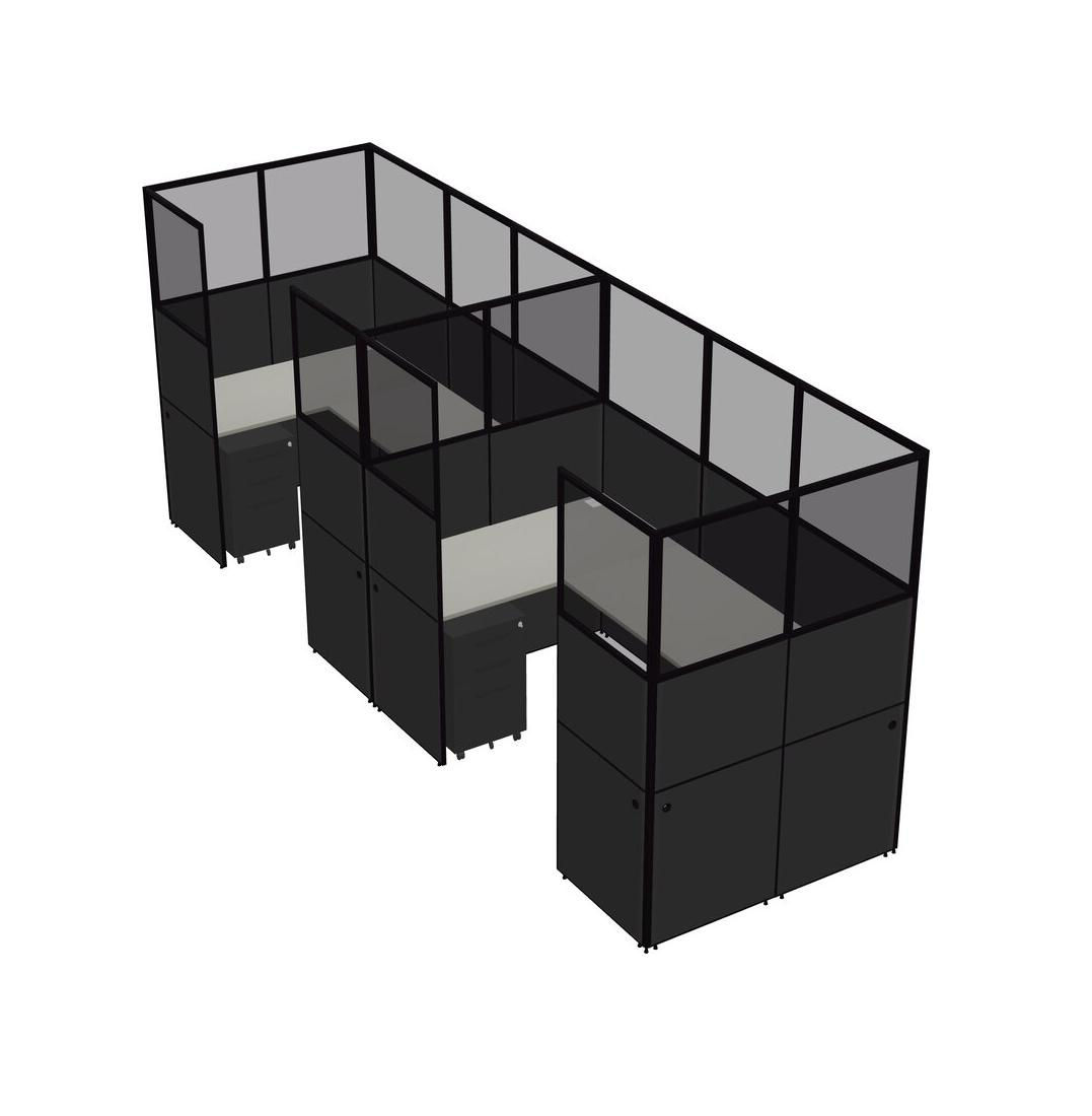 Grey Shadows U-shaped Panel System For 2 Person + Metal Mobile Drawers For 2 User(s)
