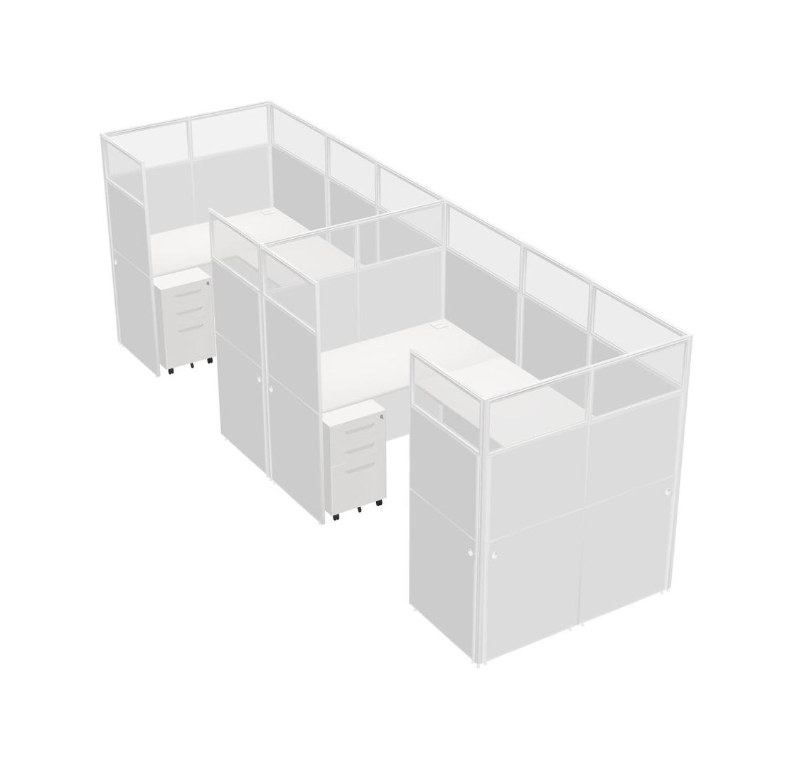 White U-shaped Panel System For 2 Person + Metal Mobile Drawers For 2 User(s)