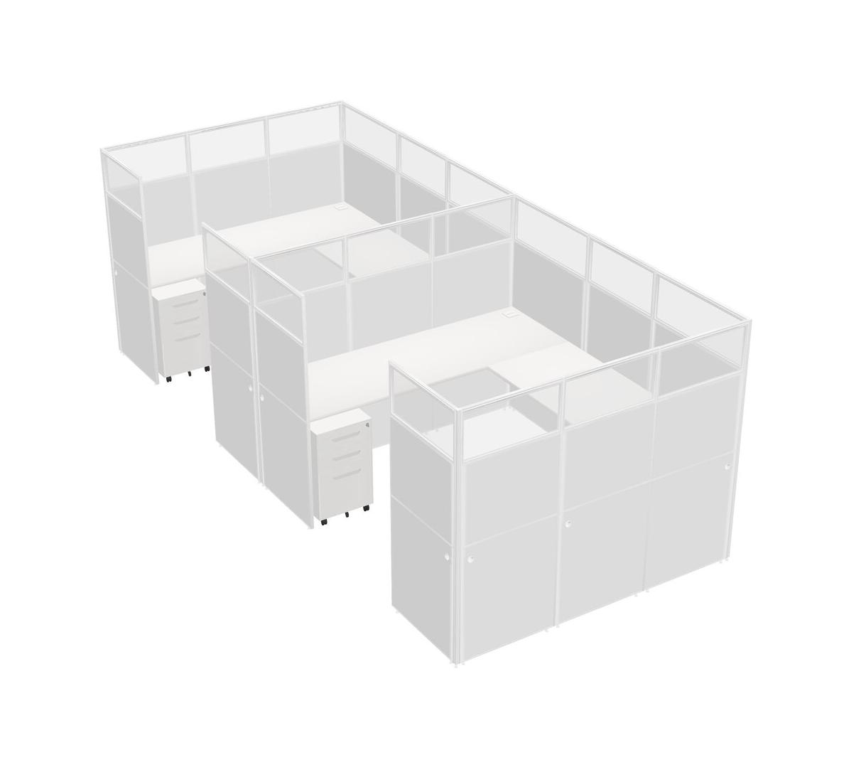 White U-shaped Panel System For 2 Person + Metal Mobile Drawers For 2 User(s)