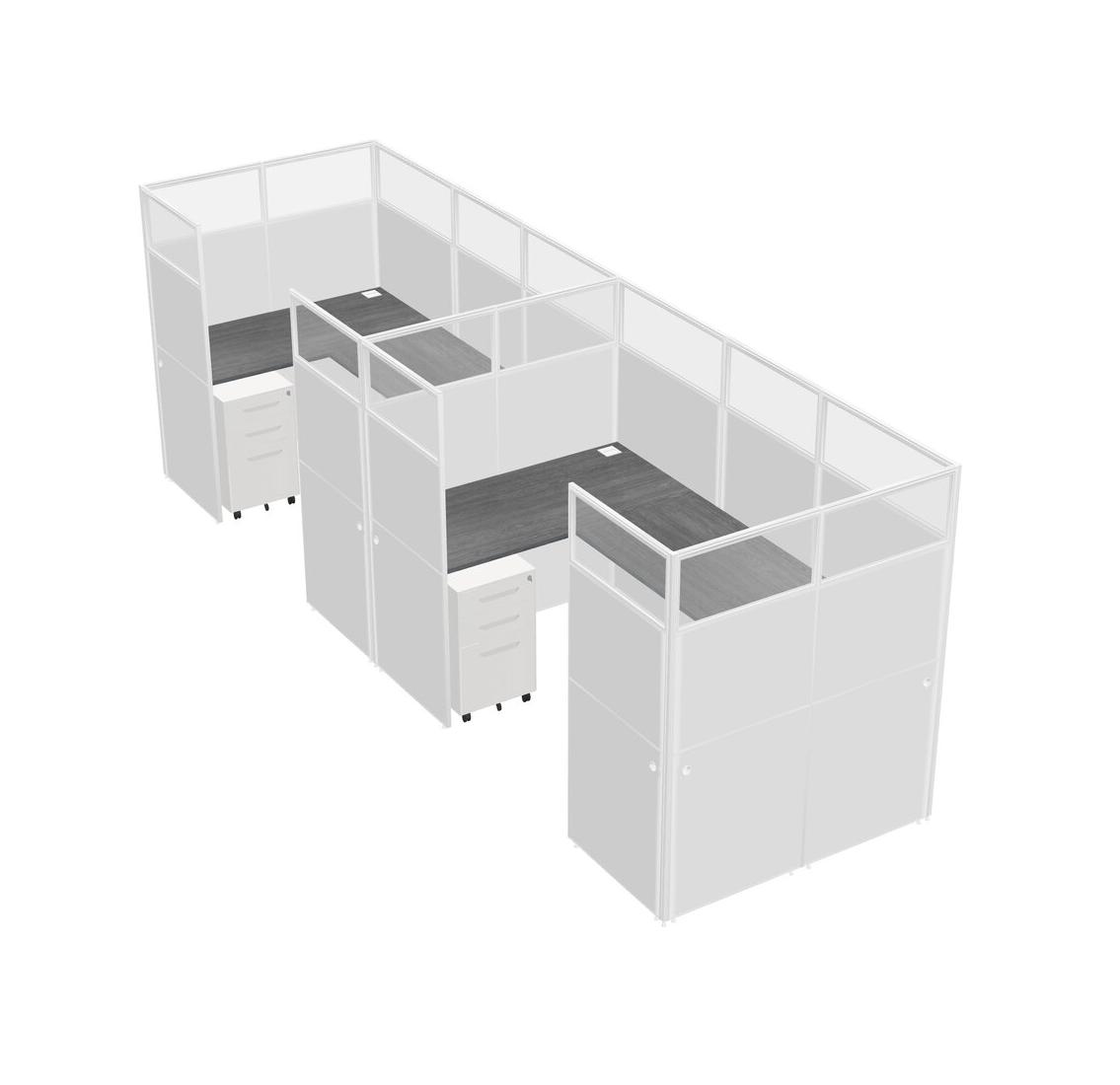 Grey U-shaped Panel System For 2 Person + Metal Mobile Drawers For 2 User(s)