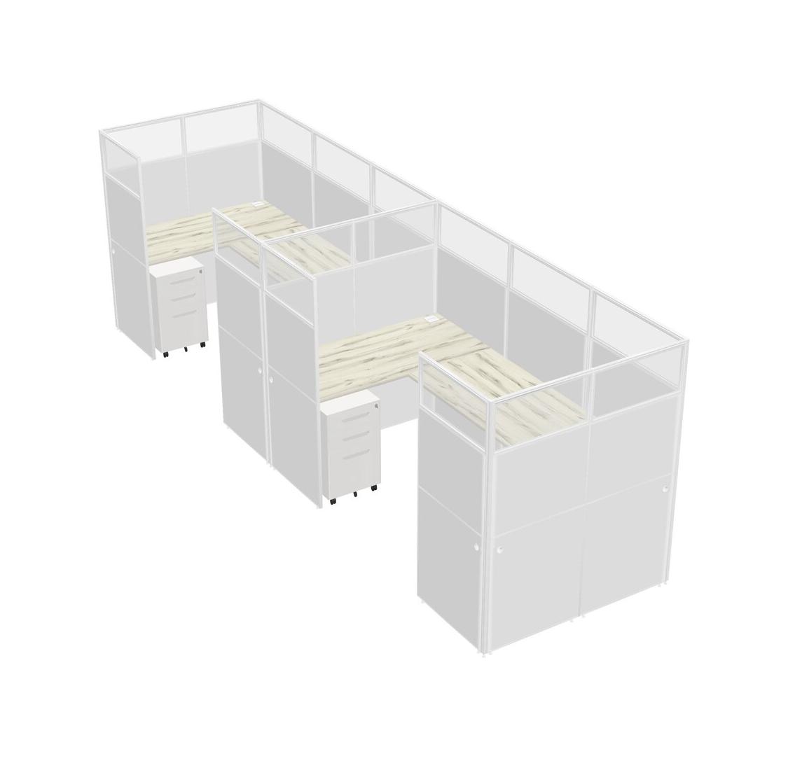 Heinne Holz U-shaped Panel System For 2 Person + Metal Mobile Drawers For 2 User(s)