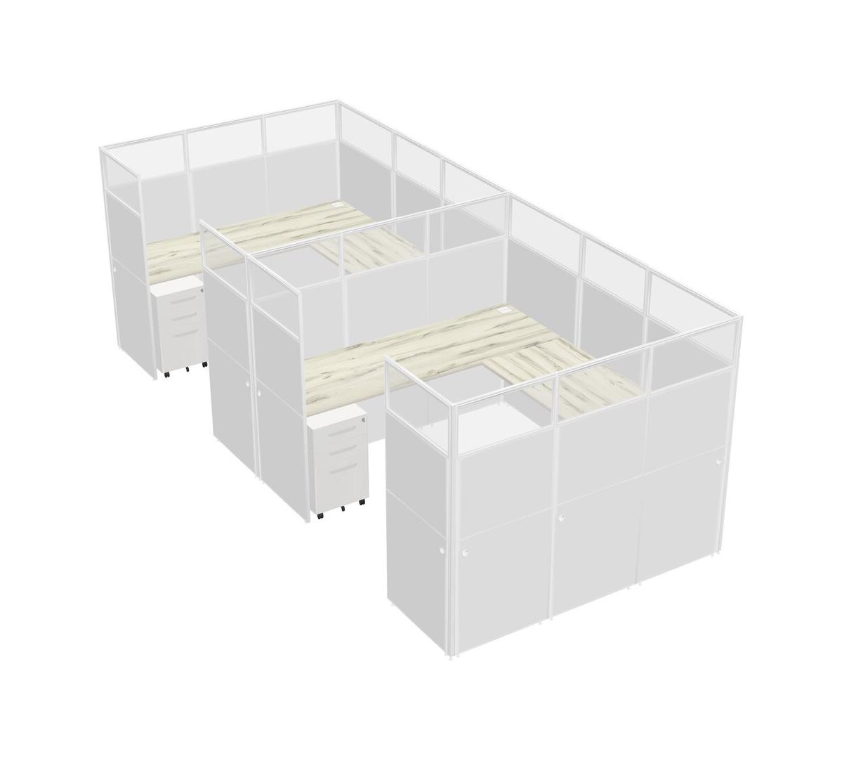 Heinne Holz U-shaped Panel System For 2 Person + Metal Mobile Drawers For 2 User(s)
