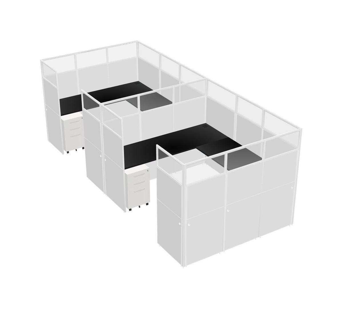 Black U-shaped Panel System For 2 Person + Metal Mobile Drawers For 2 User(s)