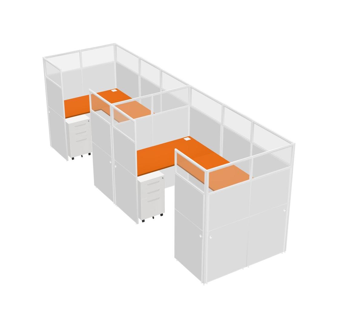 Orange U-shaped Panel System For 2 Person + Metal Mobile Drawers For 2 User(s)