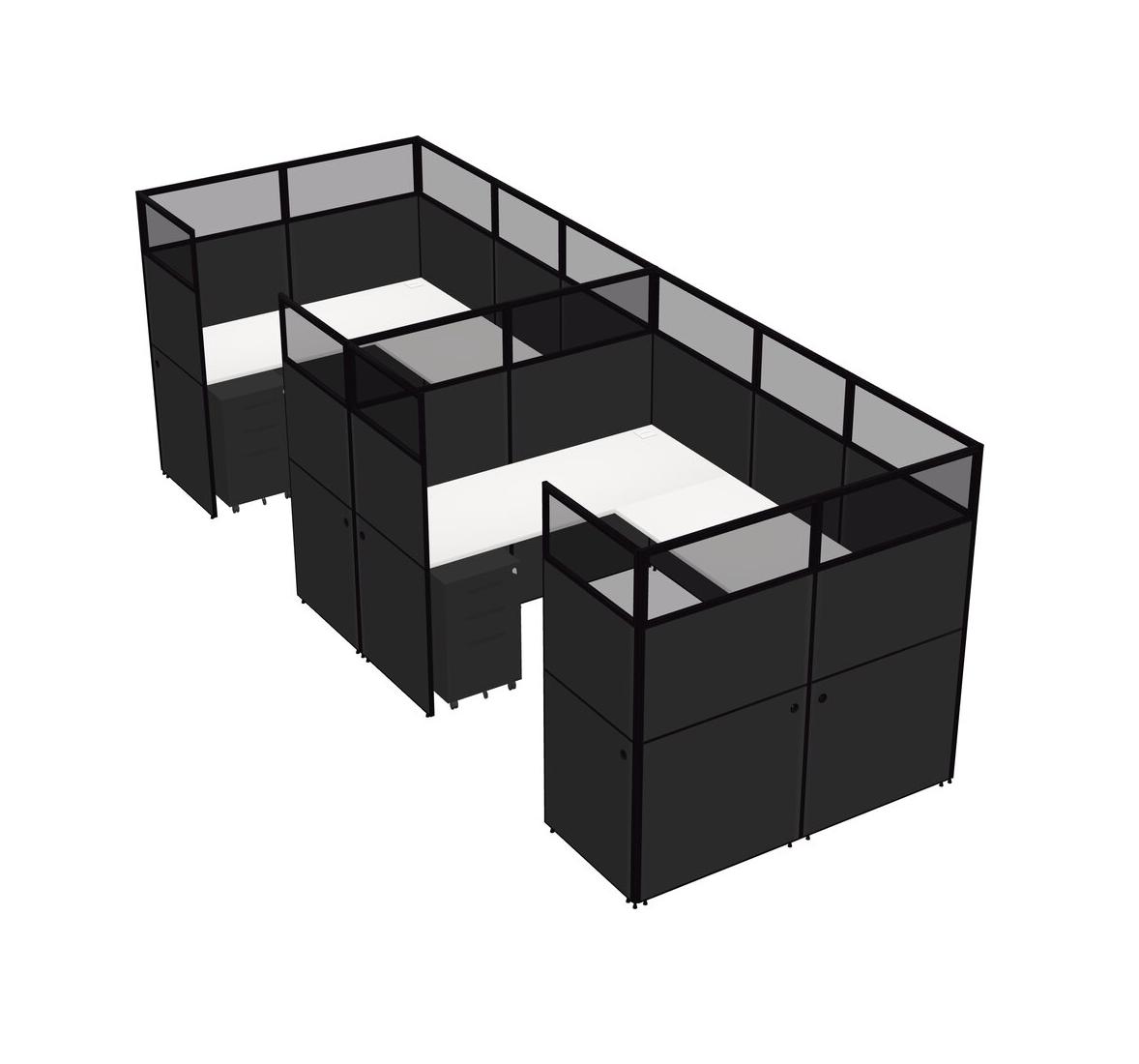 White U-shaped Panel System For 2 Person + Metal Mobile Drawers For 2 User(s)