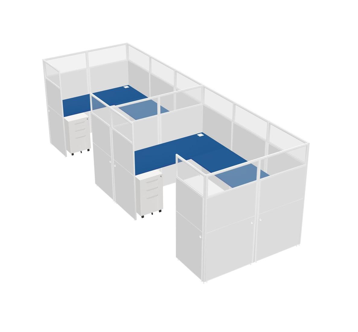 Prism Blue U-shaped Panel System For 2 Person + Metal Mobile Drawers For 2 User(s)
