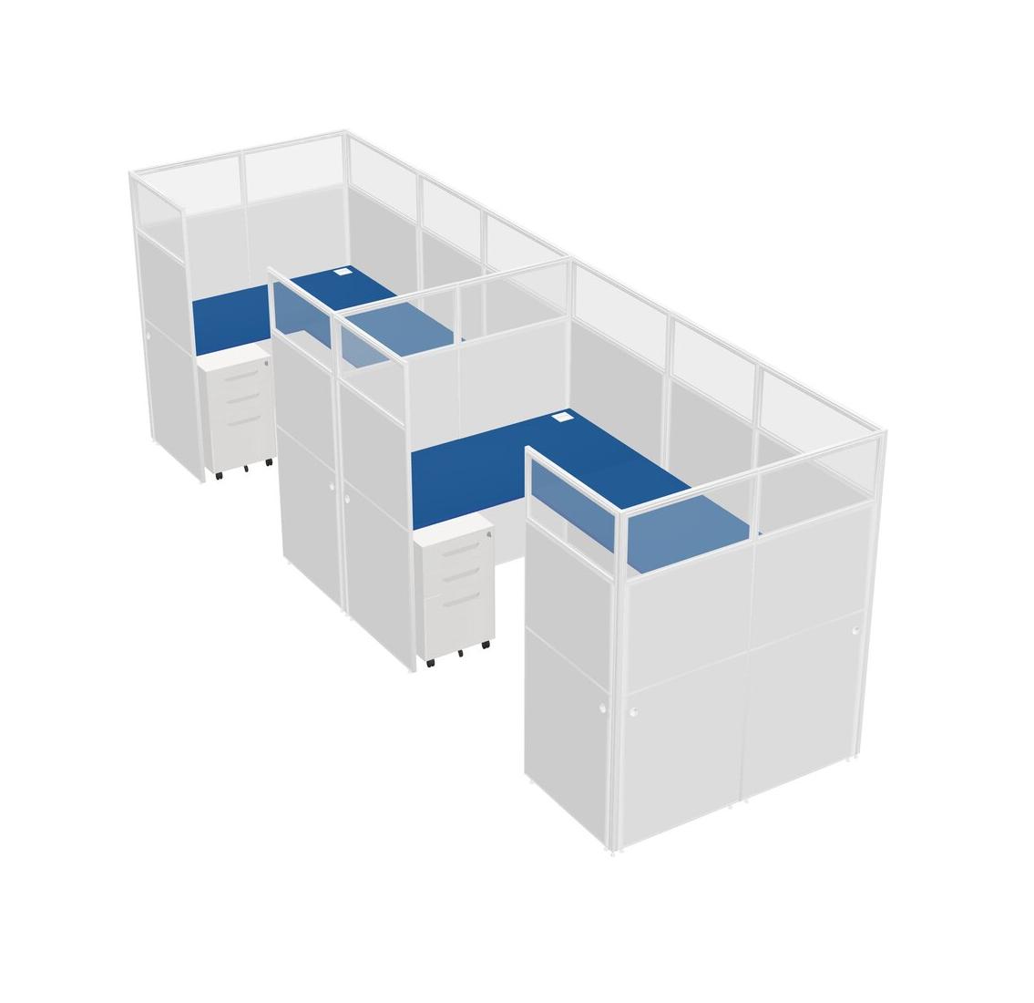 Prism Blue U-shaped Panel System For 2 Person + Metal Mobile Drawers For 2 User(s)
