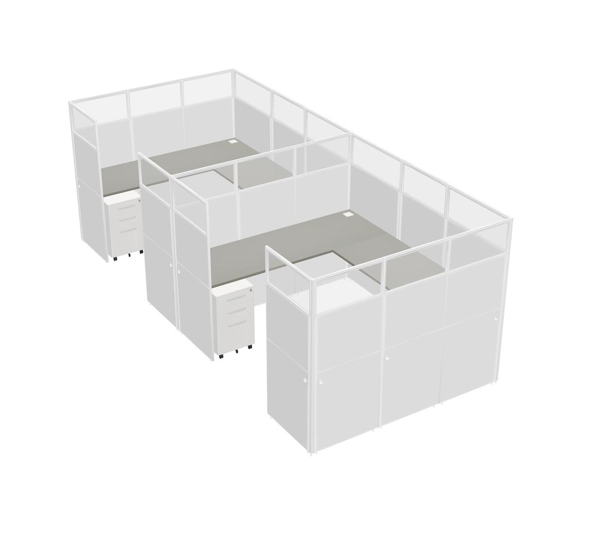 Grey Shadows U-shaped Panel System For 2 Person + Metal Mobile Drawers For 2 User(s)