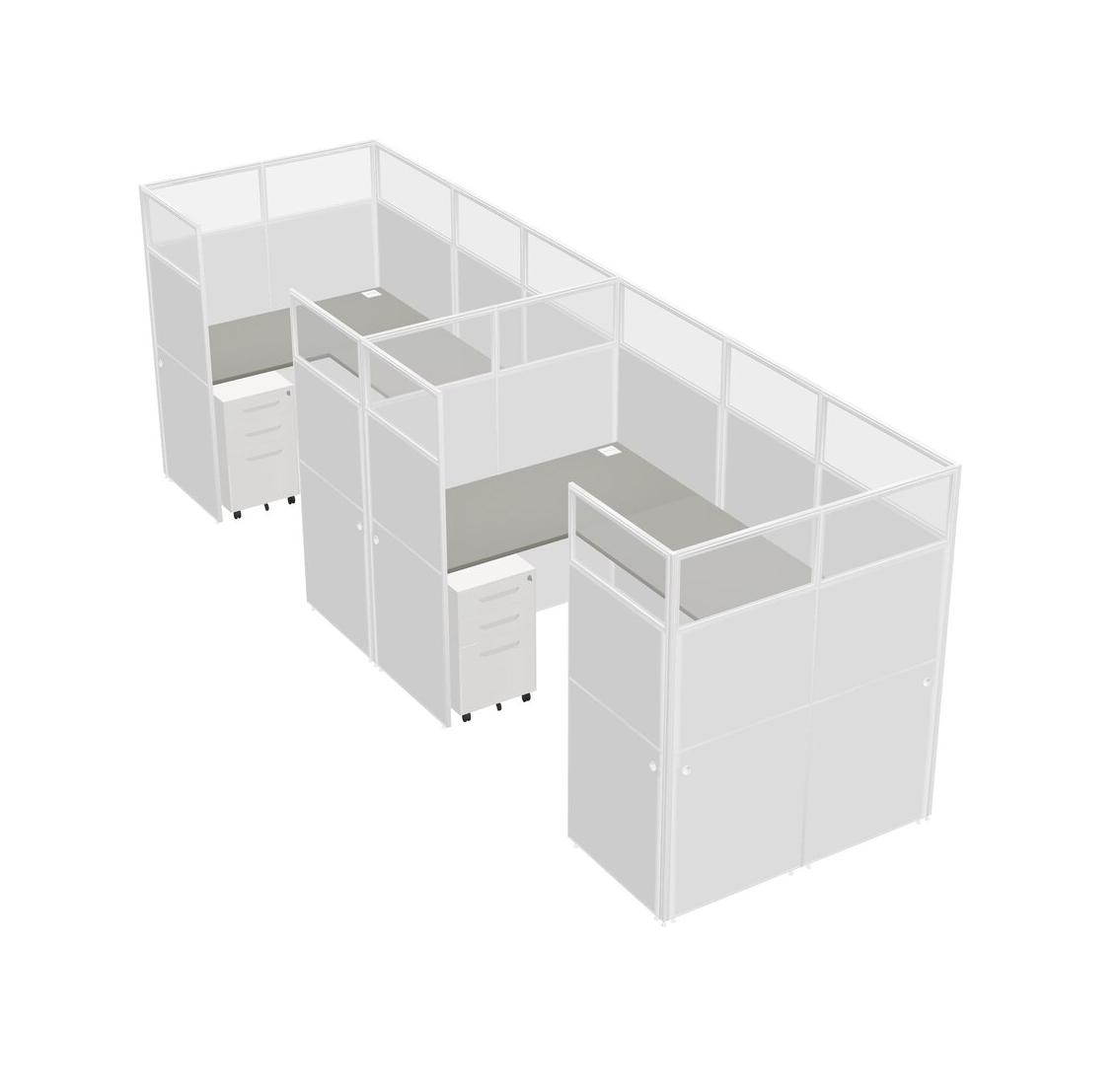 Grey Shadows U-shaped Panel System For 2 Person + Metal Mobile Drawers For 2 User(s)