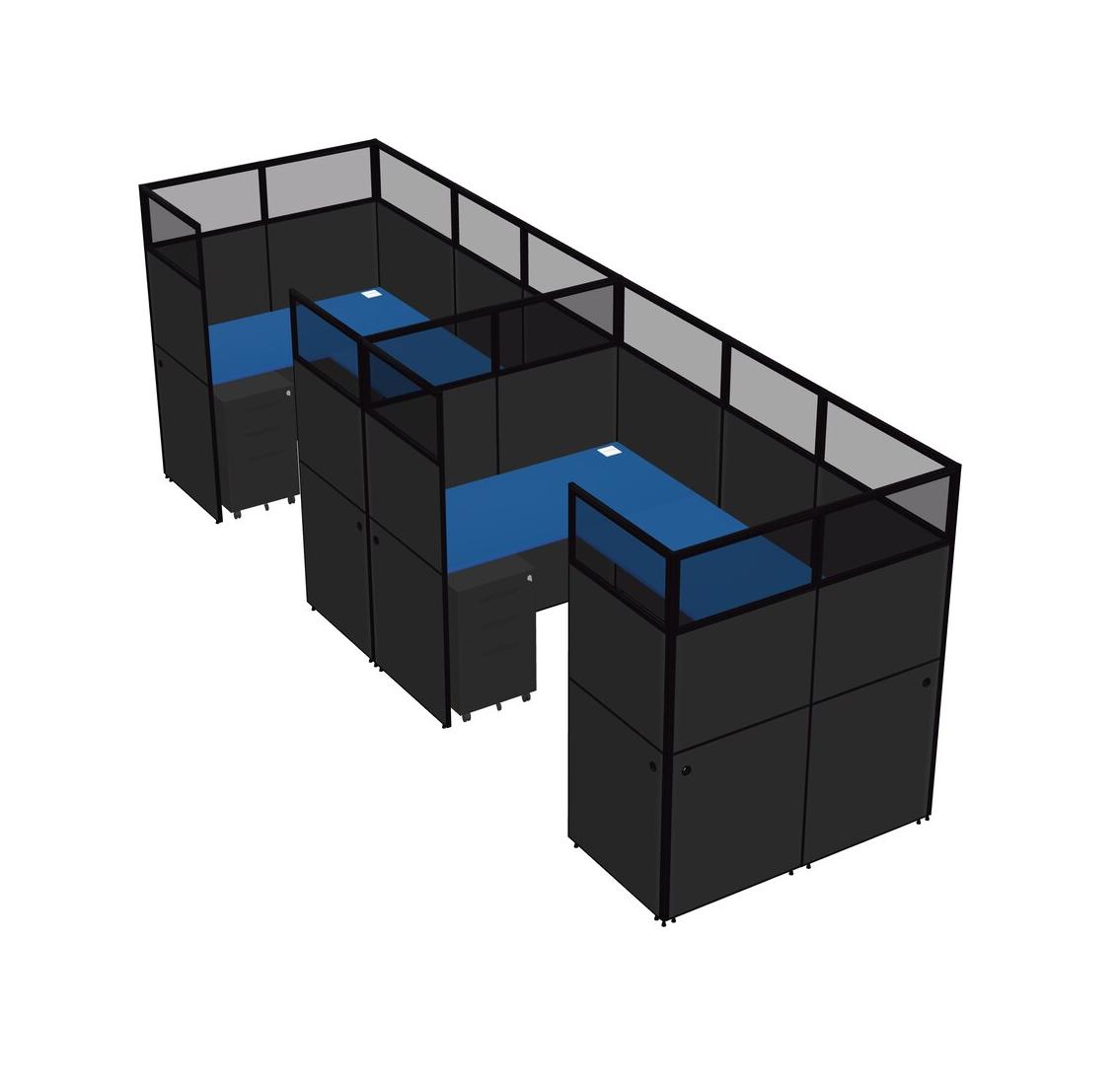 Prism Blue U-shaped Panel System For 2 Person + Metal Mobile Drawers For 2 User(s)