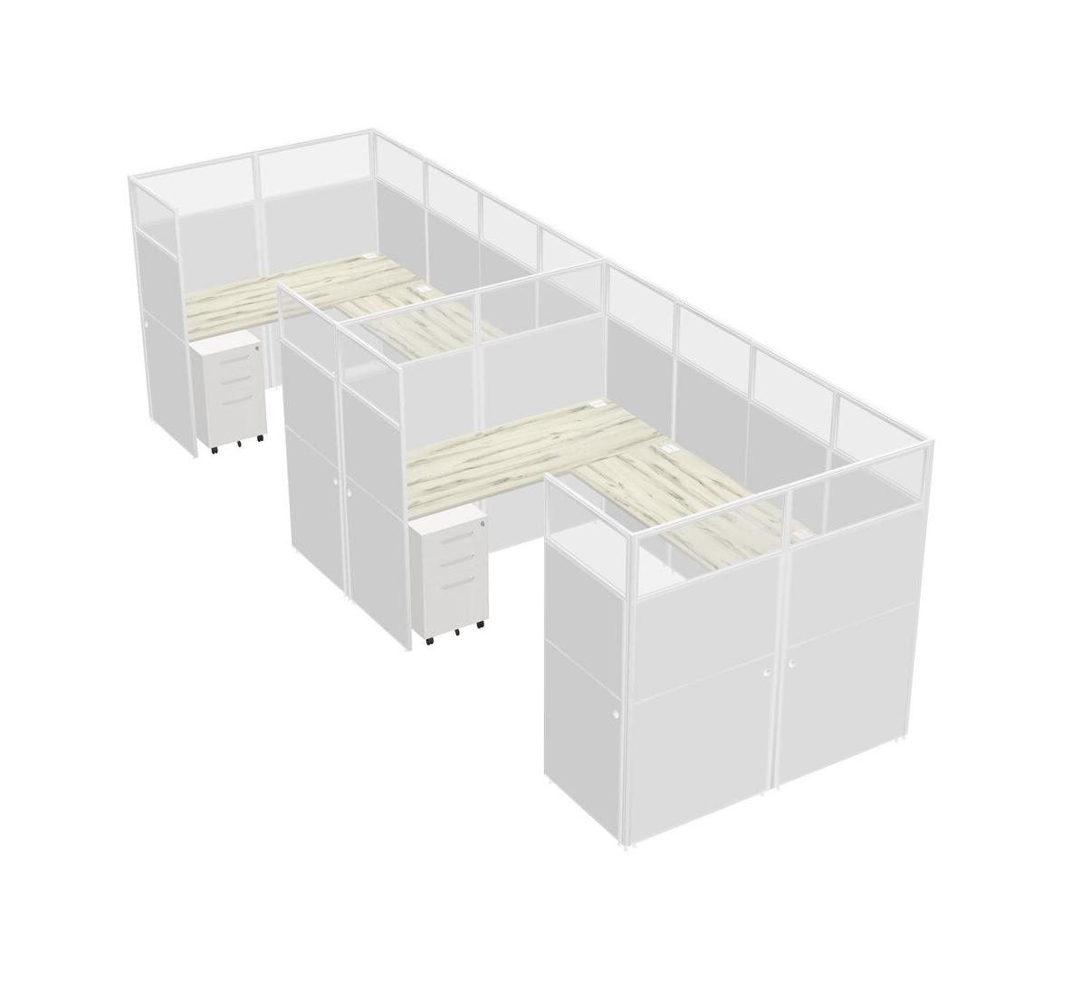 Heinne Holz U-shaped Panel System For 2 Person + Metal Mobile Drawers For 2 User(s)