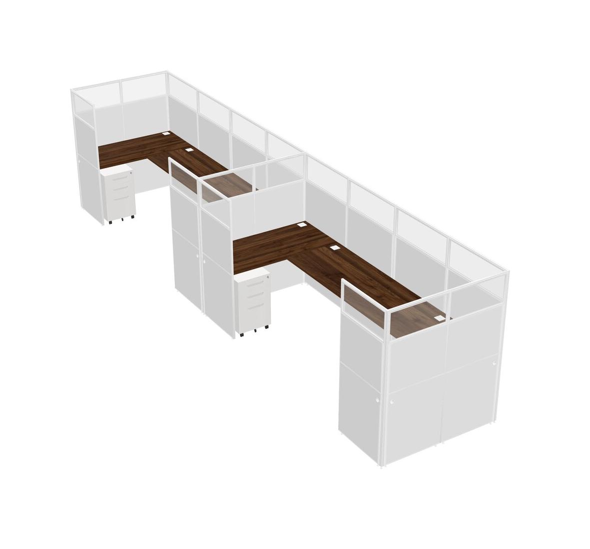 Columbia Walnut U-shaped Panel System For 2 Person + Metal Mobile Drawers For 2 User(s)