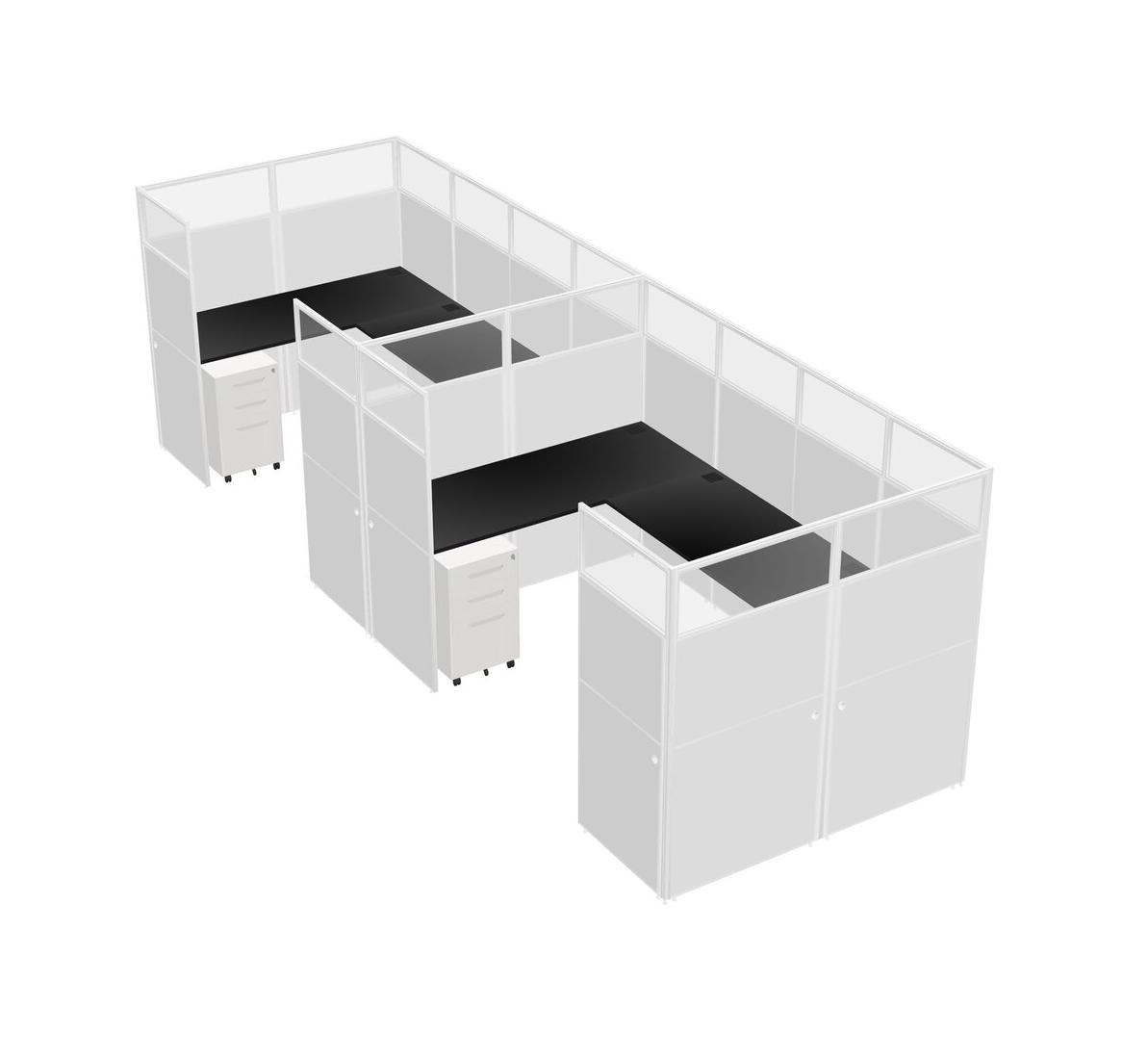 Black U-shaped Panel System For 2 Person + Metal Mobile Drawers For 2 User(s)