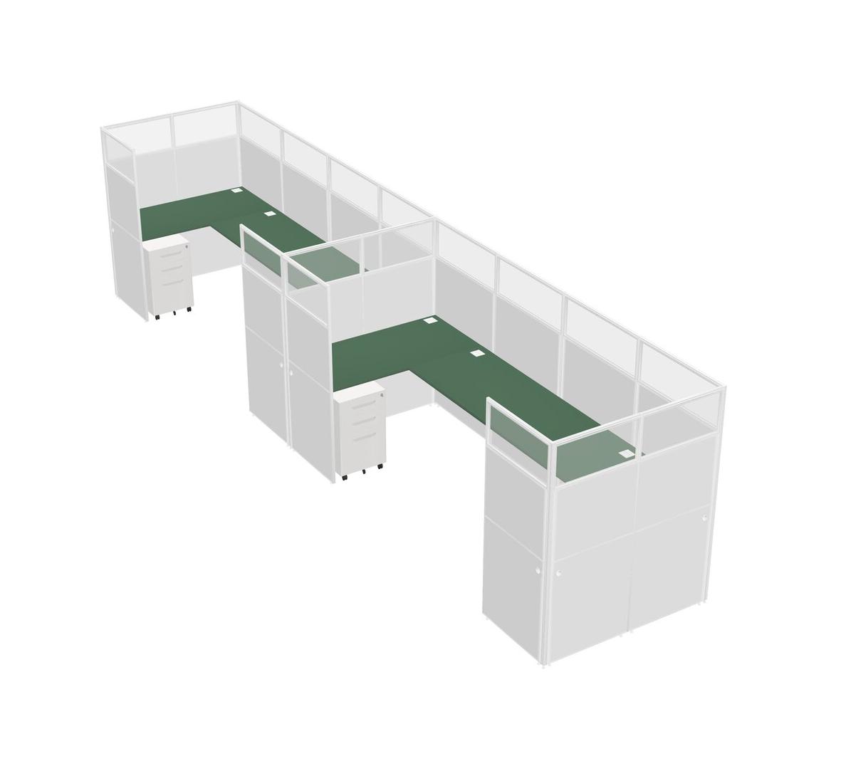 Green U-shaped Panel System For 2 Person + Metal Mobile Drawers For 2 User(s)