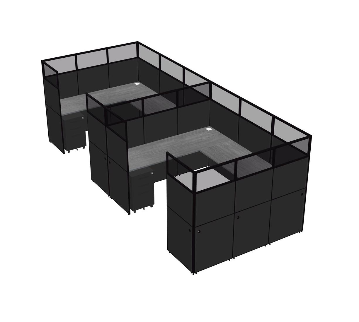 Grey U-shaped Panel System For 2 Person + Metal Mobile Drawers For 2 User(s)