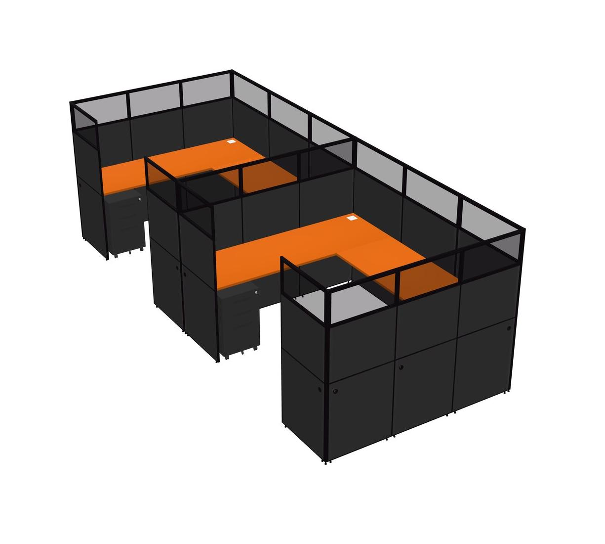 Orange U-shaped Panel System For 2 Person + Metal Mobile Drawers For 2 User(s)
