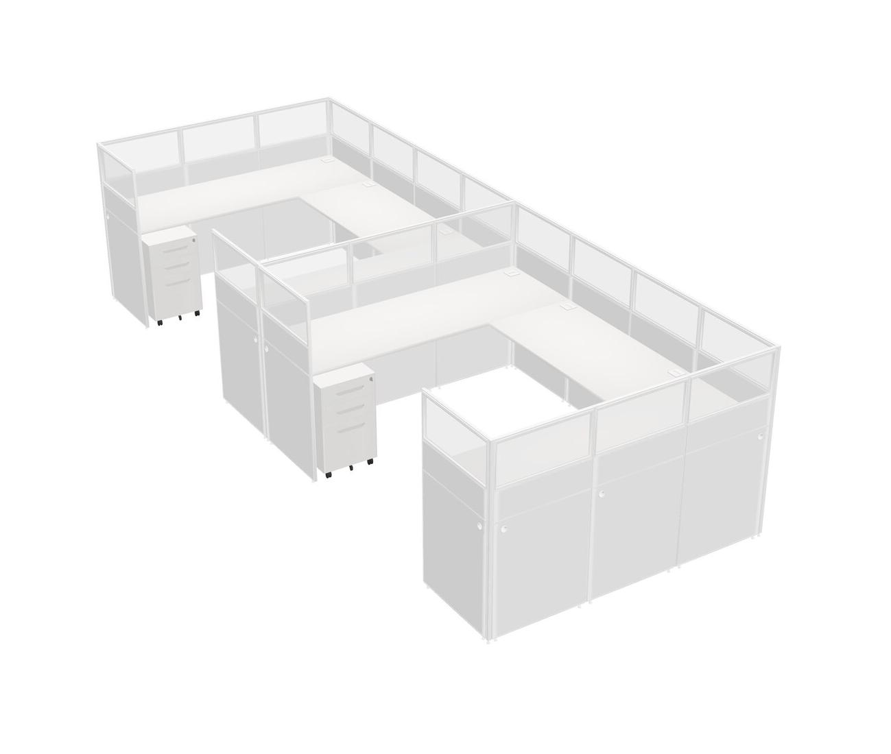 White U-shaped Panel System For 2 Person + Metal Mobile Drawers For 2 User(s)