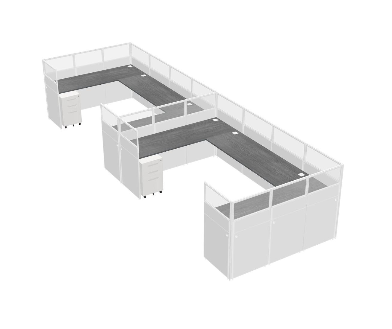 Grey U-shaped Panel System For 2 Person + Metal Mobile Drawers For 2 User(s)