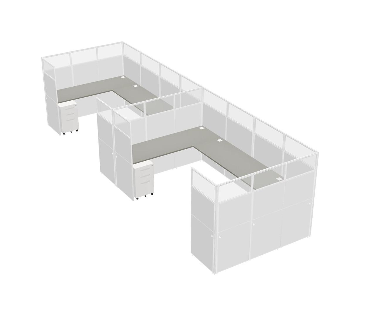 Grey Shadows U-shaped Panel System For 2 Person + Metal Mobile Drawers For 2 User(s)