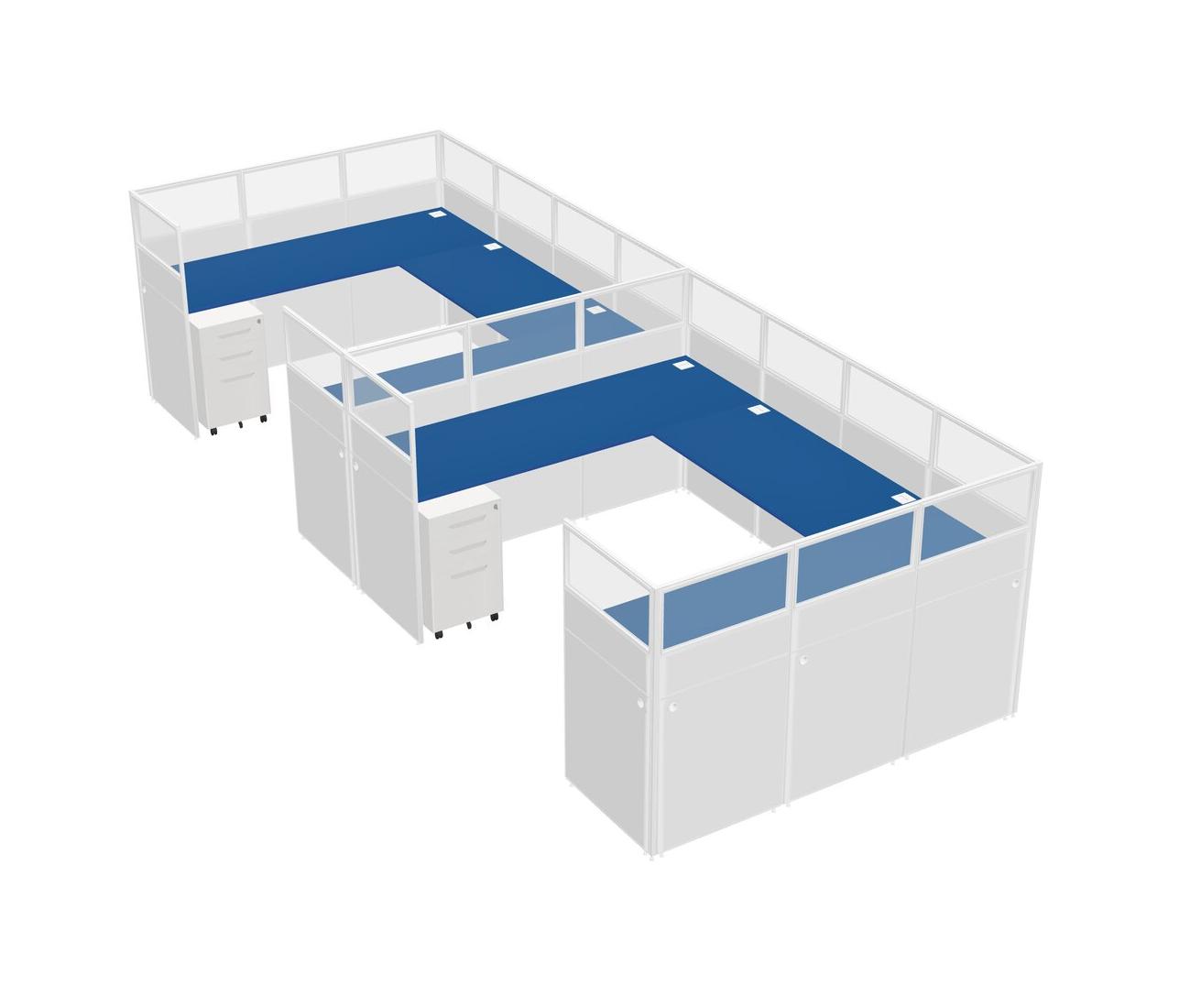 Prism Blue U-shaped Panel System For 2 Person + Metal Mobile Drawers For 2 User(s)