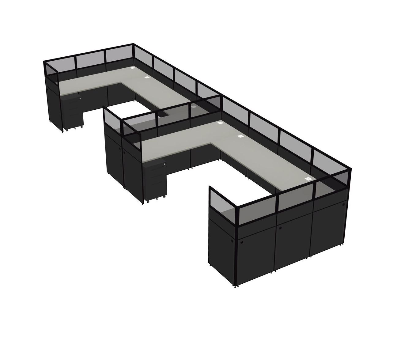 Grey Shadows U-shaped Panel System For 2 Person + Metal Mobile Drawers For 2 User(s)