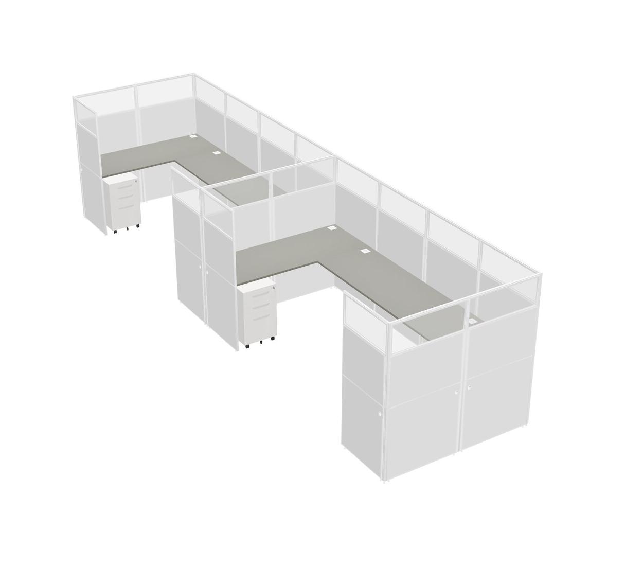 Grey Shadows U-shaped Panel System For 2 Person + Metal Mobile Drawers For 2 User(s)