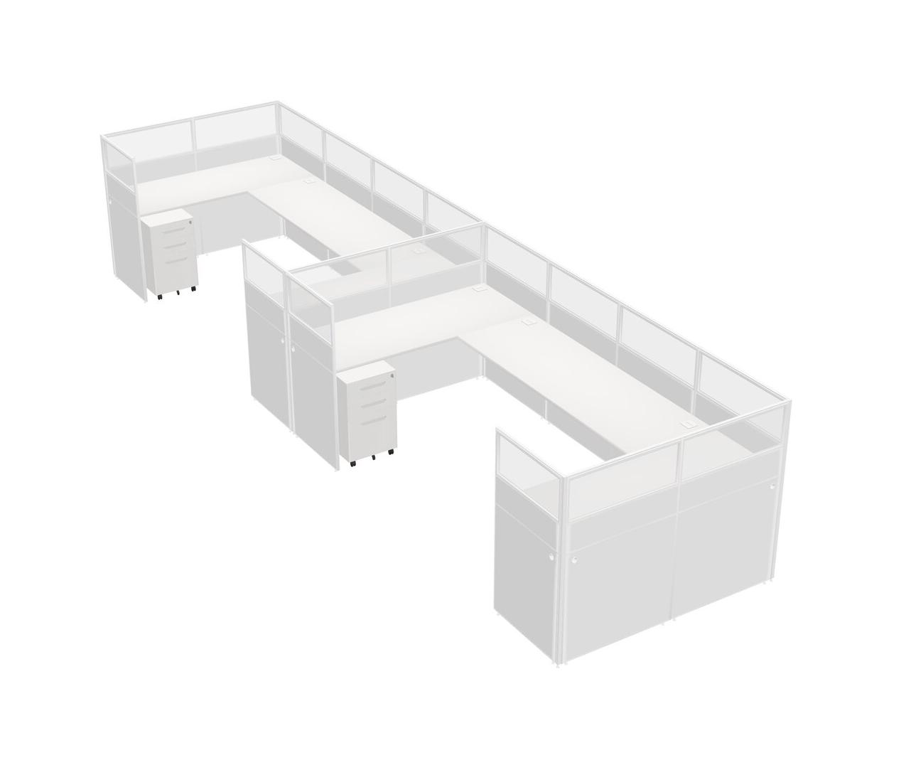 White U-shaped Panel System For 2 Person + Metal Mobile Drawers For 2 User(s)