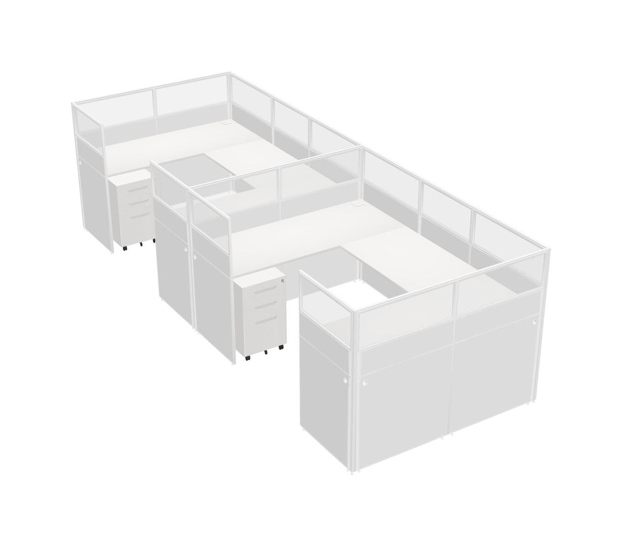 White U-shaped Panel System For 2 Person + Metal Mobile Drawers For 2 User(s)