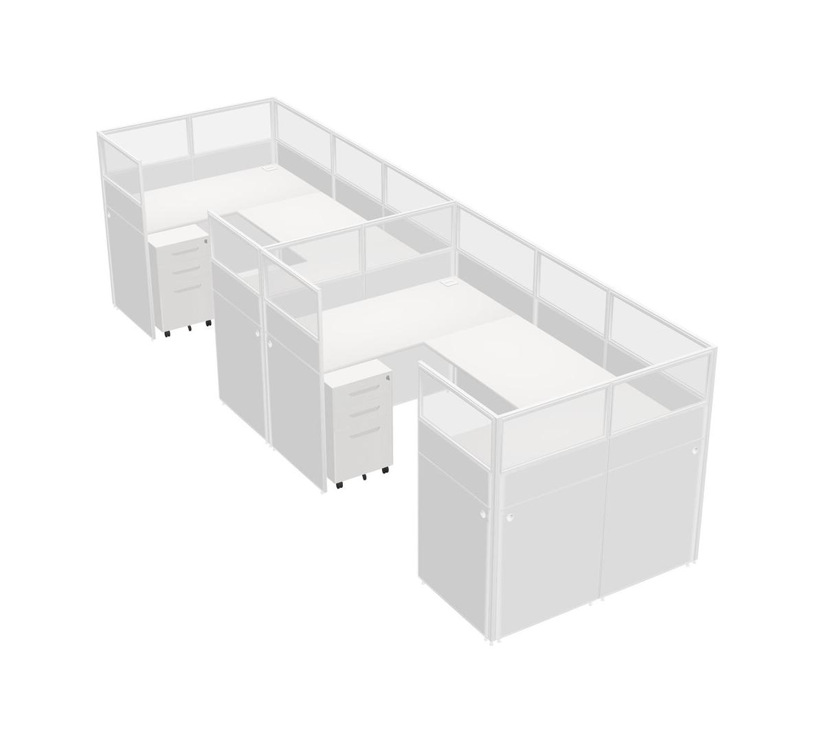 White U-shaped Panel System For 2 Person + Metal Mobile Drawers For 2 User(s)