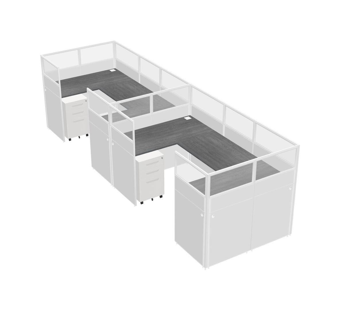 Grey U-shaped Panel System For 2 Person + Metal Mobile Drawers For 2 User(s)