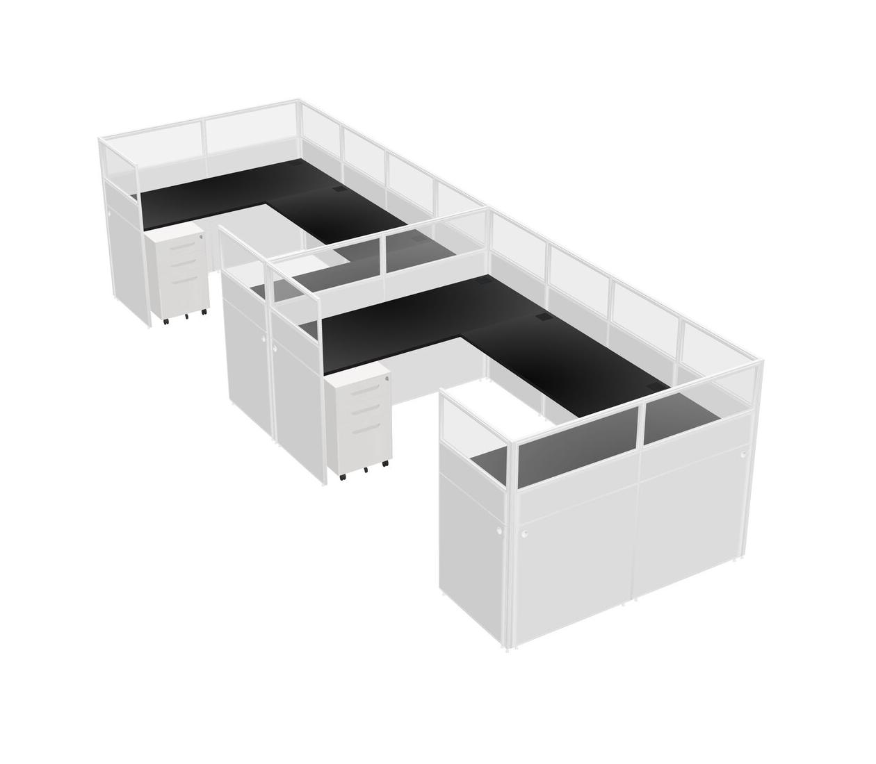 Black U-shaped Panel System For 2 Person + Metal Mobile Drawers For 2 User(s)
