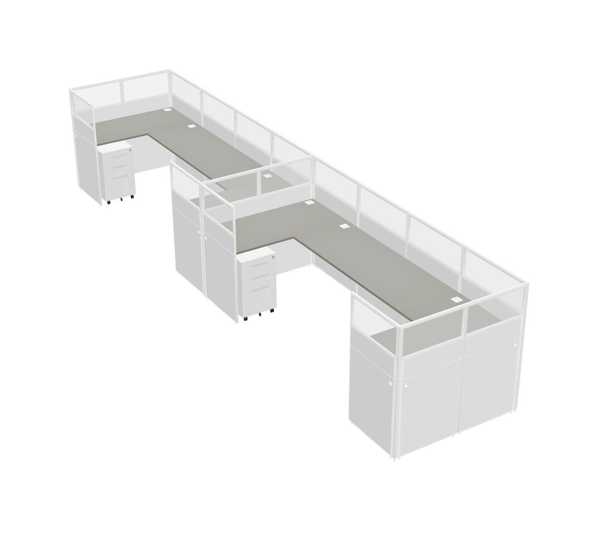 Grey Shadows U-shaped Panel System For 2 Person + Metal Mobile Drawers For 2 User(s)