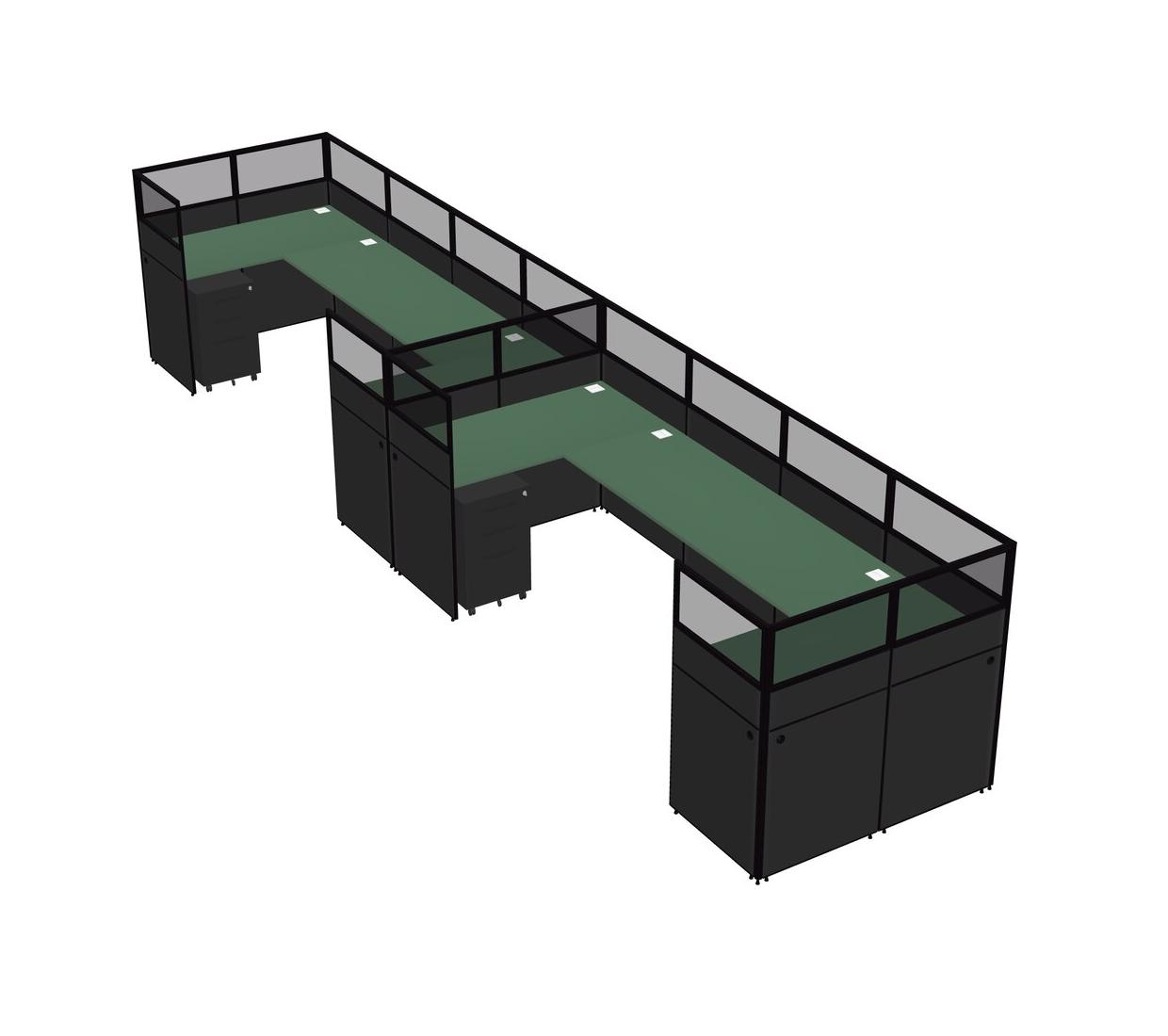 Green U-shaped Panel System For 2 Person + Metal Mobile Drawers For 2 User(s)
