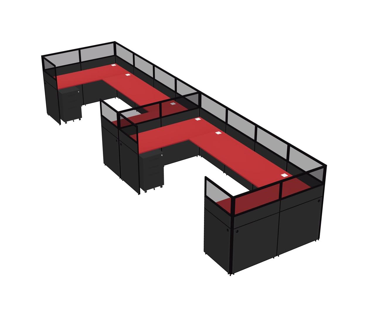 Prism Red U-shaped Panel System For 2 Person + Metal Mobile Drawers For 2 User(s)