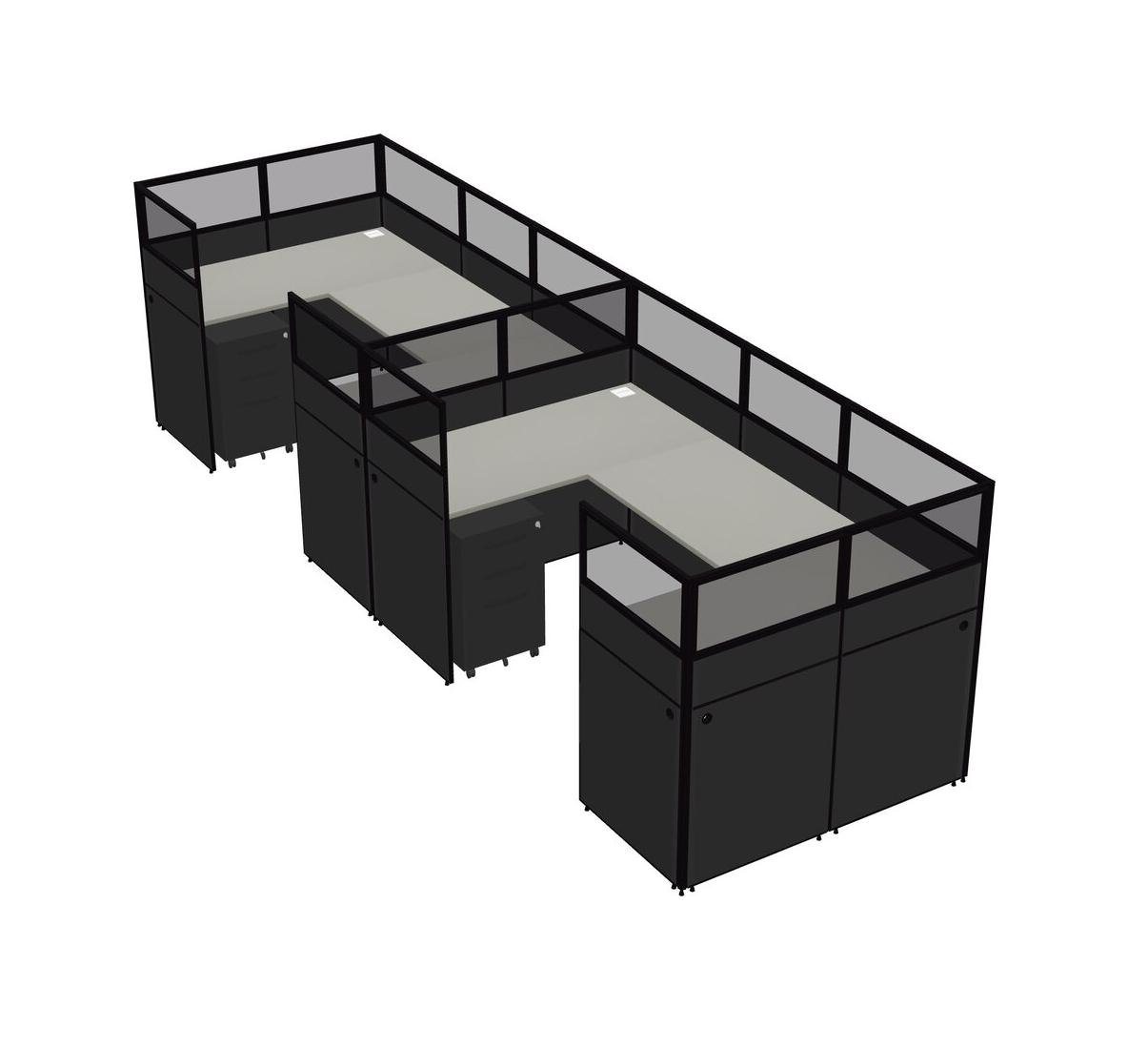 Grey Shadows U-shaped Panel System For 2 Person + Metal Mobile Drawers For 2 User(s)