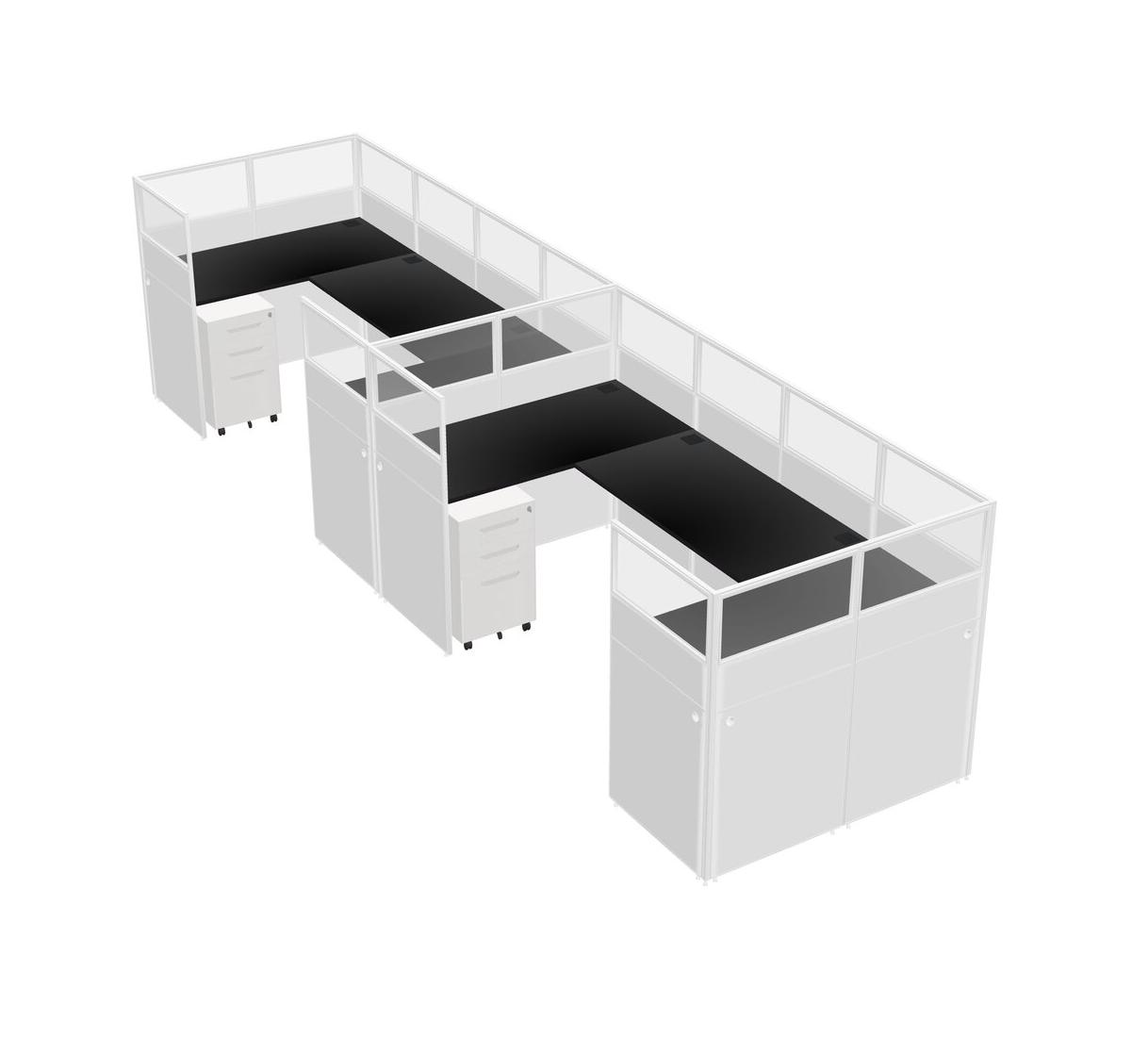 Black U-shaped Panel System For 2 Person + Metal Mobile Drawers For 2 User(s)