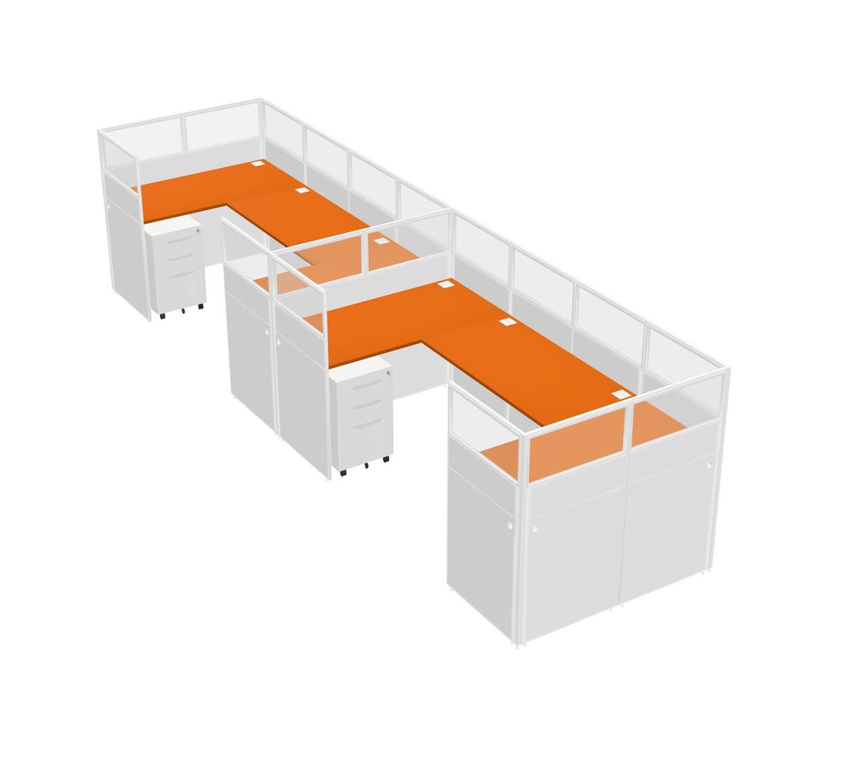 Orange U-shaped Panel System For 2 Person + Metal Mobile Drawers For 2 User(s)