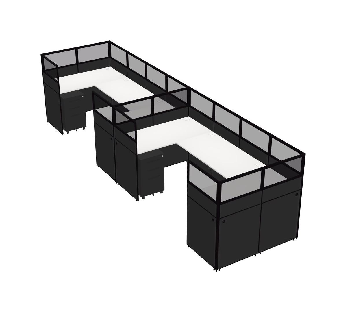 White U-shaped Panel System For 2 Person + Metal Mobile Drawers For 2 User(s)