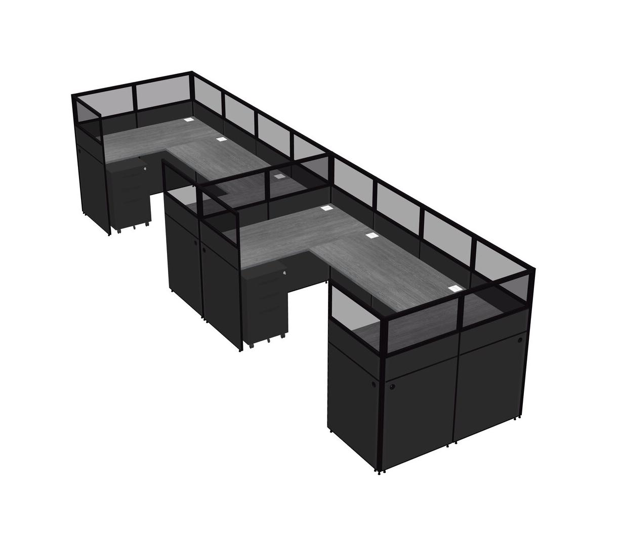 Grey U-shaped Panel System For 2 Person + Metal Mobile Drawers For 2 User(s)