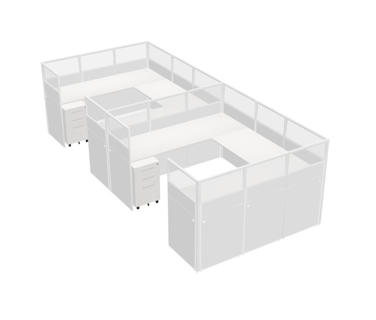 White U-shaped Panel System For 2 Person + Metal Mobile Drawers For 2 User(s)