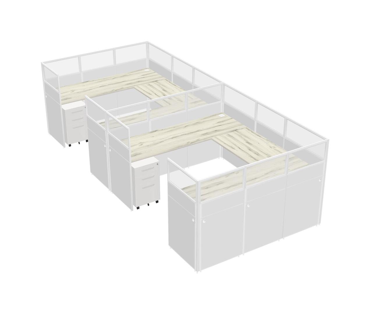 Heinne Holz U-shaped Panel System For 2 Person + Metal Mobile Drawers For 2 User(s)