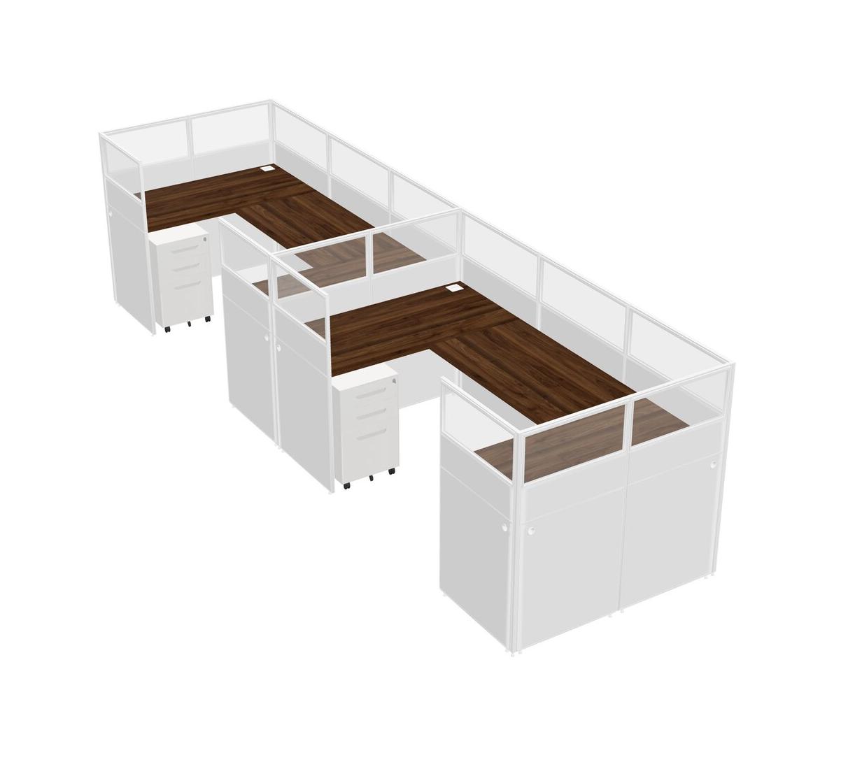 Columbia Walnut U-shaped Panel System For 2 Person + Metal Mobile Drawers For 2 User(s)