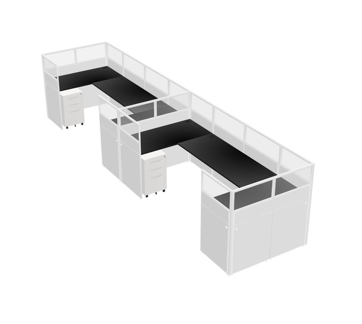 Black U-shaped Panel System For 2 Person + Metal Mobile Drawers For 2 User(s)